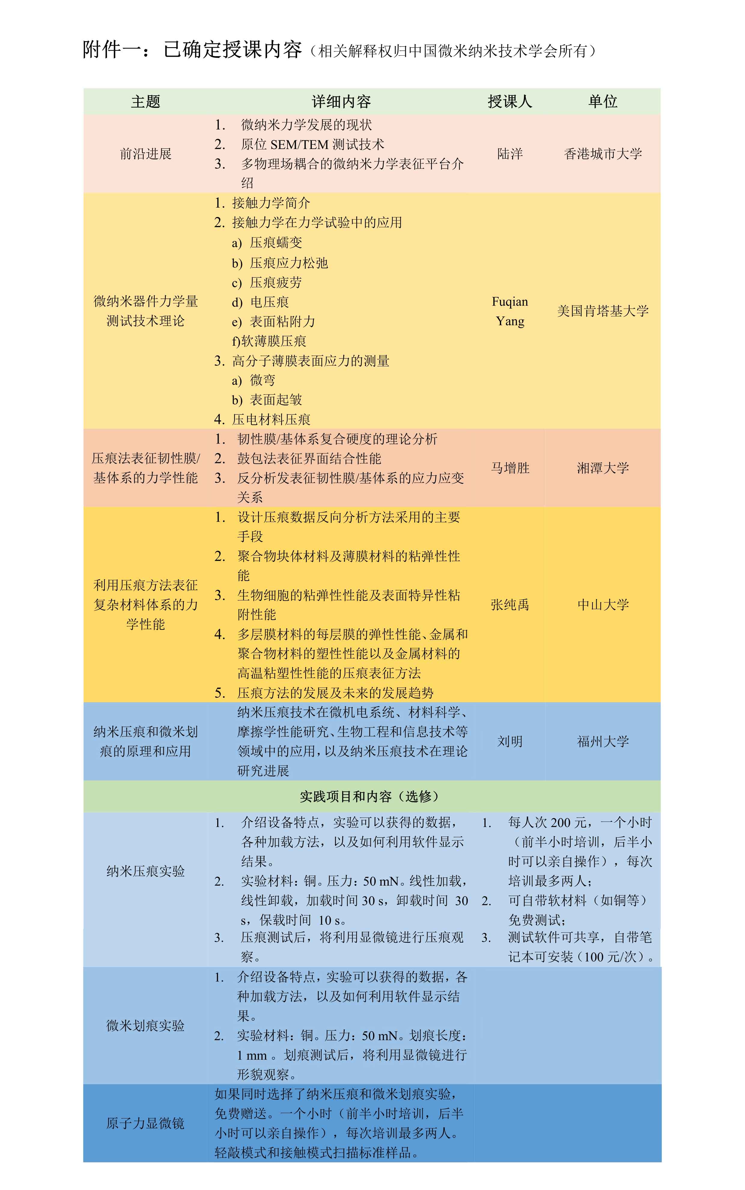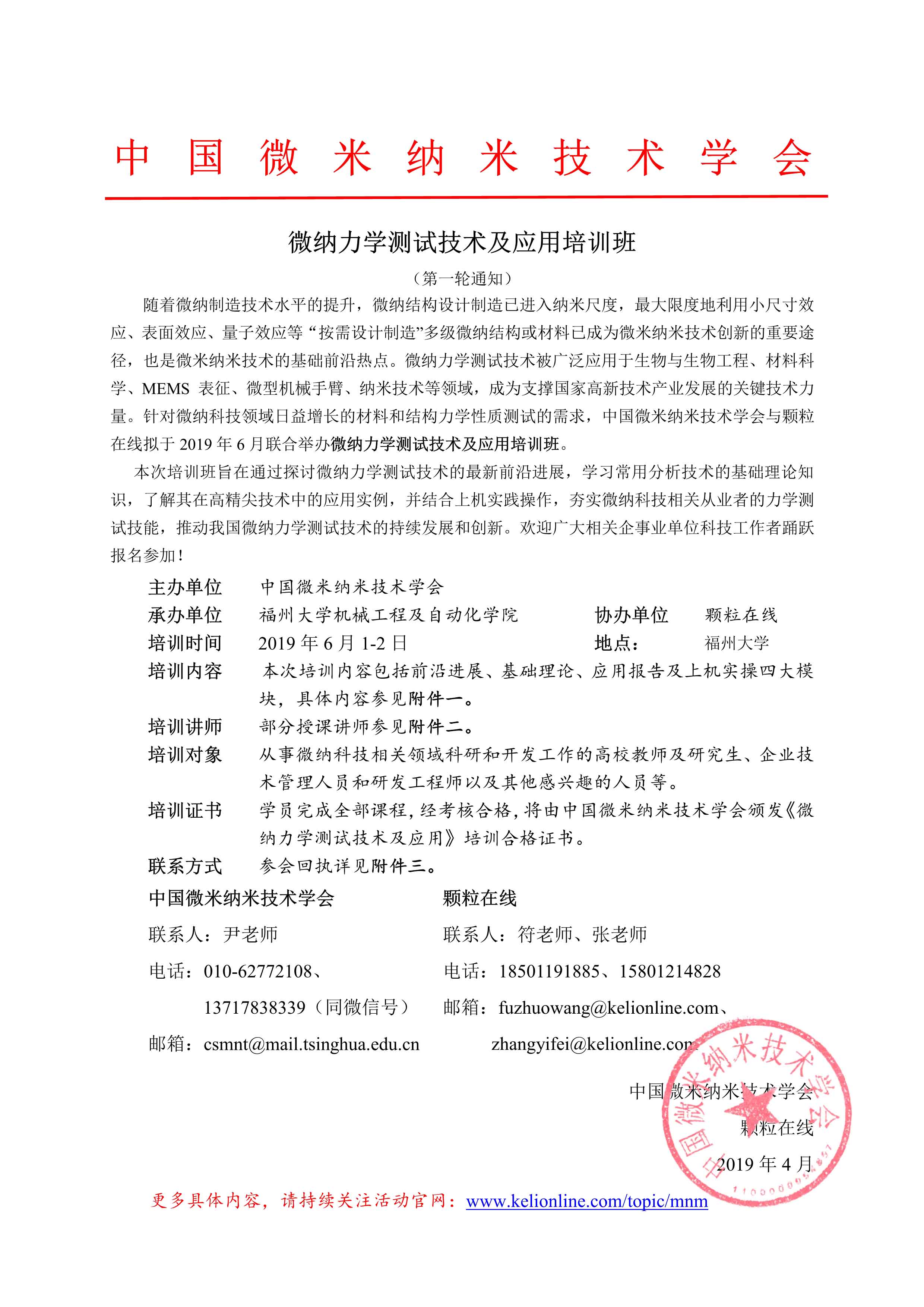 微纳力学测试技术及应用培训班(第一轮通知)