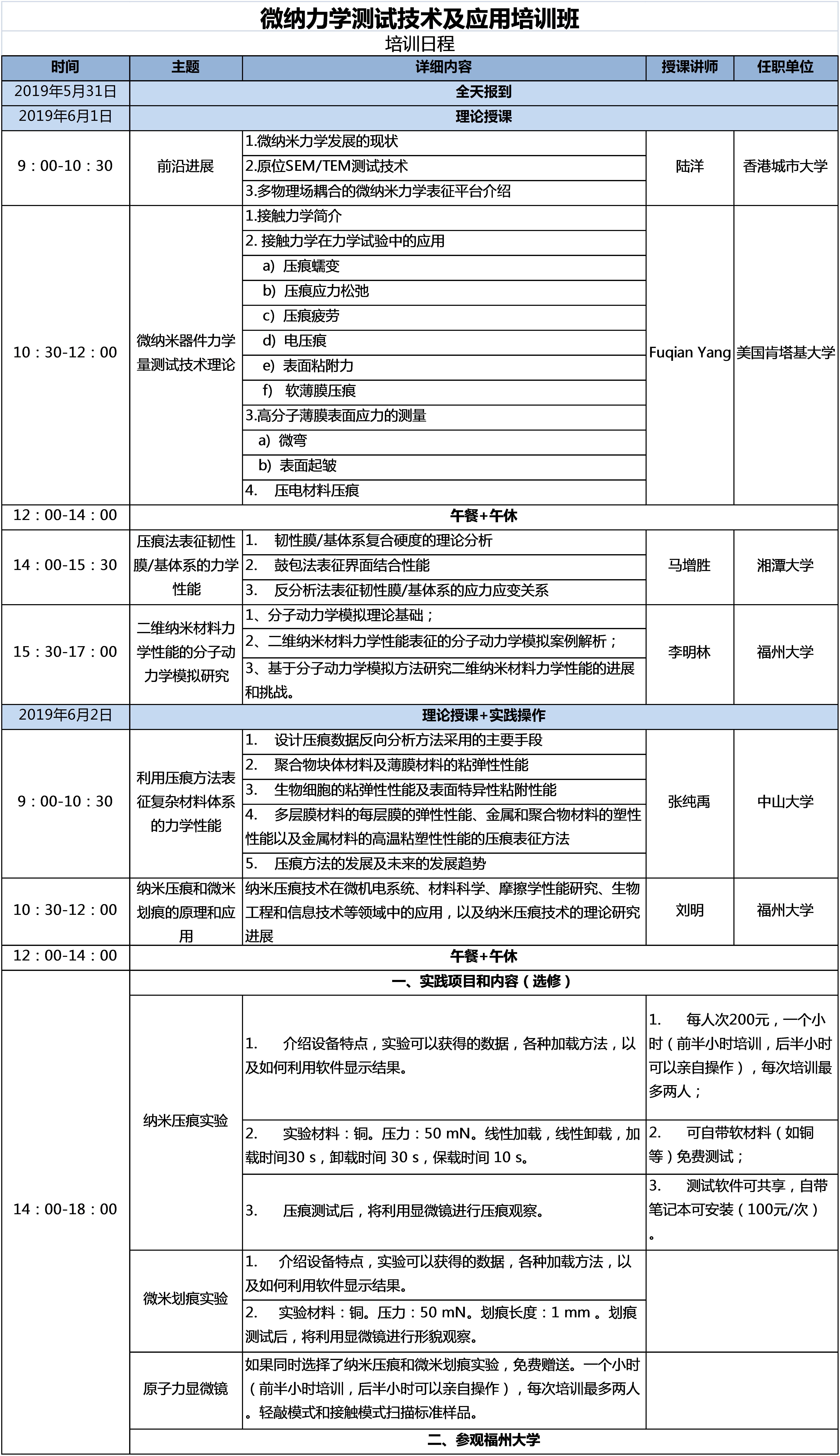 微纳力学测试技术及应用培训班(第二轮通知)