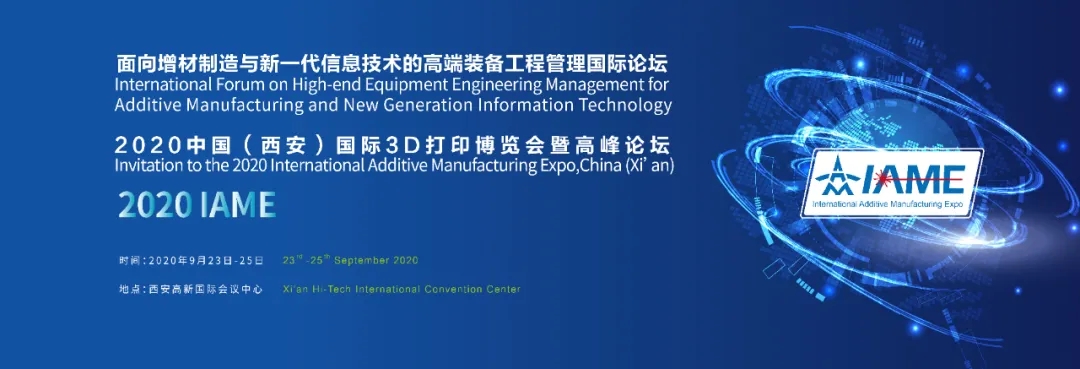 2020年9月23-25日,由中国工程院向巧院士、卢秉恒院士邀请海内外院士学者,国家增材制造创新中心组织举办的2020IAME-中国(西安)国际3D打印博览会暨高峰论坛,将在西安高新国际会议中心举办。2020IAME-中国(西安)国际3D打印博览会暨高峰论坛,与中国工程院主办的“面向增材制造与新一代信息技术的高端装备工程管理国际论坛”同期召开。坚持“学术会议+行业展览+国际大赛”的框架下,持续丰富其他配套活动。2020IAME组委会诚邀关注和支持增材制造行业发展的各界同仁,莅临参展、参会、参观交流,欢迎您的到来!