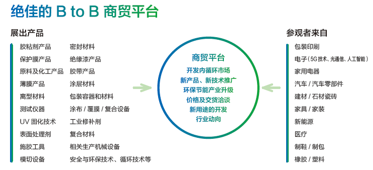 展会将以行业高性能、绿色发展为宗旨,打造更多产品主题展区及各类热门产品区,包括UV/EB固化技术及产品区、电子材料展区、新兴用胶、热管理材料展区等。
