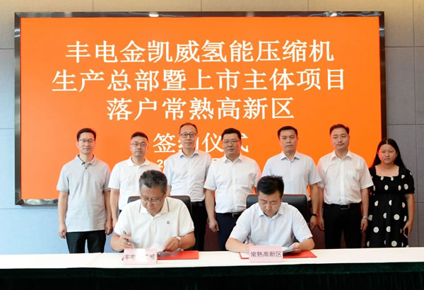 8月19日,丰电金凯威氢能压缩机项目签约落户常熟高新区。常熟市委常委、高新区党工委书记王建国,高新区党工委副书记、管委会副主任芮卫国,高新区党工委委员、管委会副主任顾志强出席签约仪式。