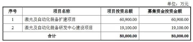 海目星本次募集的资金为8亿元,全部用于与公司主营业务相关的项目。