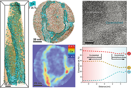 图1. Mg-Zn-Ca双相金属玻璃(NDP-MG)的结构与成分