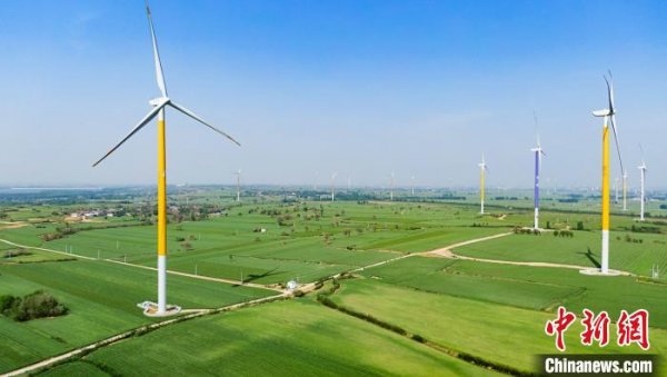 全国首座整场大规模采用高塔的平原绿色风场——汤阴风电场引人入胜。 闫晓虹 摄