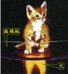 一只小猫蹲在用火烧烤的“玻璃板”上