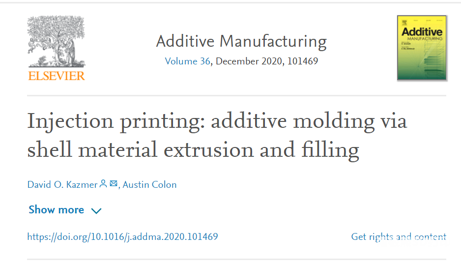 Kazmer和Austin Colon在《Additive Manufacturing》杂志上写道:"注射打印结合了以精细分辨率对零件外表面的材料挤出和以高流速对较大的内部空腔进行注射成型。Colon是塑料工程专业的博士生,他帮助验证了这项技术。"这种技术利用材料挤出打印机的全部熔化能力"他们补充道。