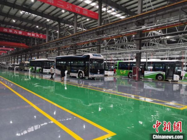 9日,在山西转型综改示范区山西德志时代新能源汽车公司(以下简称“德志时代”)车间内,一辆辆蓝白、青白相间的氢能源公交车、中巴车光可鉴人,车身上“氢燃料电池客车”的字样说明了它的动力来源。