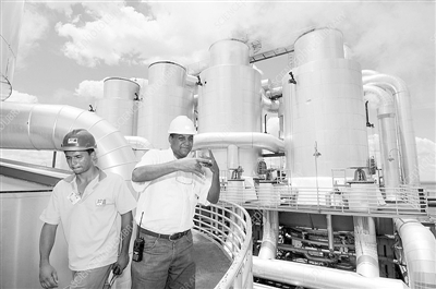 巴西圣保罗的一家生物燃料生产厂。这家工厂用甘蔗生产糖,然后用剩余的植物物质生产乙醇燃料。图片来源:网络(media.sciencephoto.com)