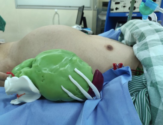 刁德昌认为,术前利用3D人体打印技术重建模型,可以清晰地看到,肿瘤上方到达膈肌,靠近脾动静脉,下方突入到盆腔,和髂血管之间存在一定的可分离间隙,同时肿瘤与周围脏器的关系一清二楚。