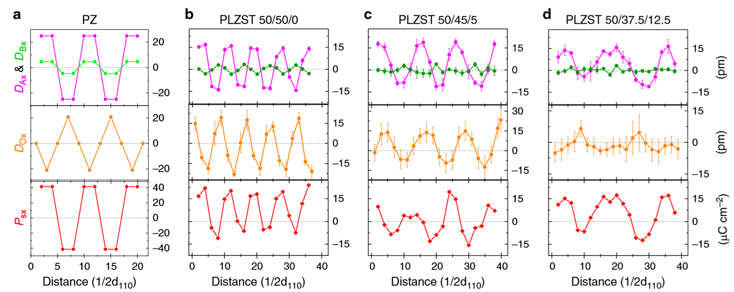 图1. PLZST系列陶瓷极化序构的原子尺度表征