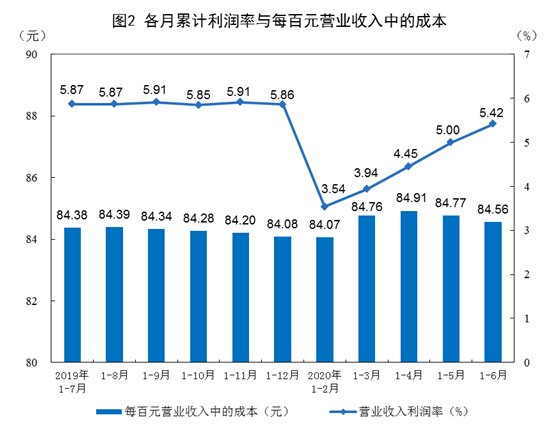 四是钢铁、油气开采、石油加工、有色等重点行业利润改善明显。受市场需求改善、工业品价格回暖、成本压力减缓、相关扶持政策效果显现等多重有利因素影响,钢铁、油气开采、石油加工、有色等重点行业利润大幅改善。6月份,钢铁、有色行业利润同比分别增长35.3%、24.1%,5月份则分别下降50.5%、49.3%;油气开采行业利润下降55.0%,降幅比5月份收窄83.1个百分点;石油加工行业利润增长1.86倍,5月份为增长8.9%。