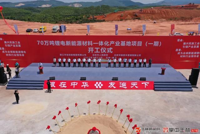 自治区副主席周红波、玉林市委书记黄海昆、浙江华友控股集团有限公司董事长陈雪华、浙江华友控股集团有限公司总裁汪海涛、广西北部湾国际港务集团董事长韦韬、玉林市市长白松涛、国家开发银行广西分行行长梅世文、北京华旆资本管理有限公司总裁卢群等出席开工仪式,并一同为项目开工培土奠基。