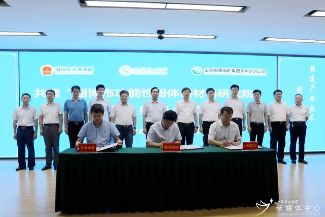 7月18日上午,山东理工大学与淄川区、山东东华水泥有限公司在东华水泥办公楼四层会议室举行合作签约仪式,签约共建淄博市功能性粉体新材料研究院。