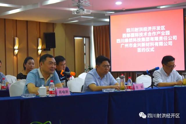 2020年7月15日,四川射洪经济开发区西部合作技术产业园四川绿然科技集团有限公司与广州市金兴新材料有限公司年产5000吨高性能稀土永磁合金材料项目签约仪式在绿然国际大酒店举行。