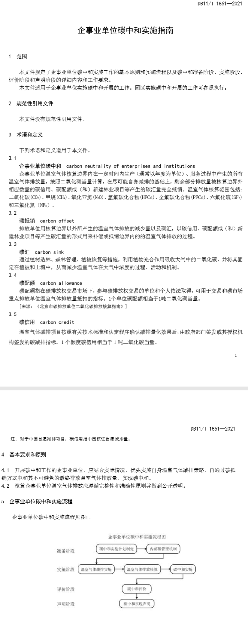 本文件规定了企事业单位碳中和实施工作的基本原则和实施流程以及碳中和准备阶段、实施阶段、评价阶段和声明阶段的详细内容和工作要求。