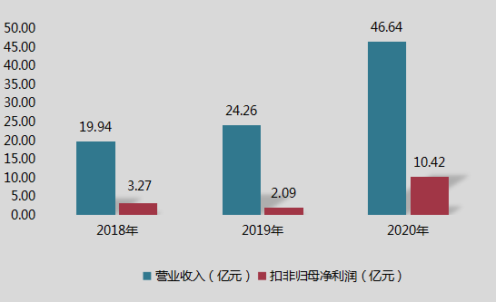 2018年至2020年期间,大全能源营业收入分别为19.94亿元、24.26亿元、46.64亿元;扣非归母净利润分别为3.27亿元、2.09亿元、10.42亿元。