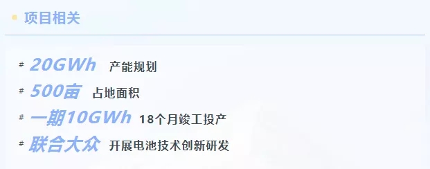 根据协议,合肥国轩将在合肥新站高新区内投资建设年产20GWh大众标准电芯项目,项目预计占地 500 亩。该项目将统一规划、分期实施,一期项目10GWh拟自开工之日起 18 个月后竣工投产。国轩与大众将联合开展电池技术创新研发,将新站高新区打造成全球新能源汽车动力电池产业的重要基地。