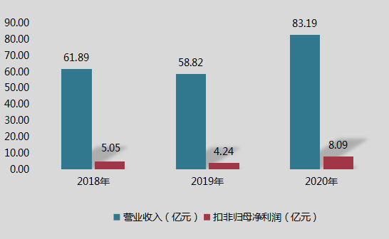 2018年至2020年期间,圣泉集团营业收入分别为61.89亿元、58.82亿元、83.19亿元;扣非归母净利润分别为5.05亿元、4.24亿元、8.09亿元。