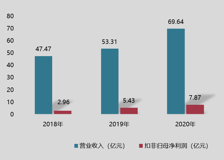 数据显示,2018年至2020年期间,珠海冠宇营业收入分别为47.47亿元、53.31亿元、69.64亿元;扣非归母净利润分别为2.96亿元、5.43亿元、7.87亿元。