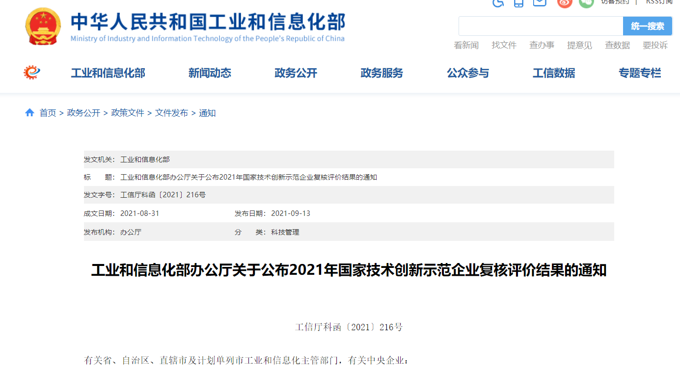 根据工业和信息化部、财政部《技术创新示范企业认定管理办法(试行)》(工信部联科〔2010〕540号)和《工业和信息化部办公厅关于开展2021年国家技术创新示范企业复核评价工作的通知》(工信厅科函〔2021〕93号)要求,工业和信息化部对2018年认定及通过复核的214家国家技术创新示范企业组织开展了复核评价。