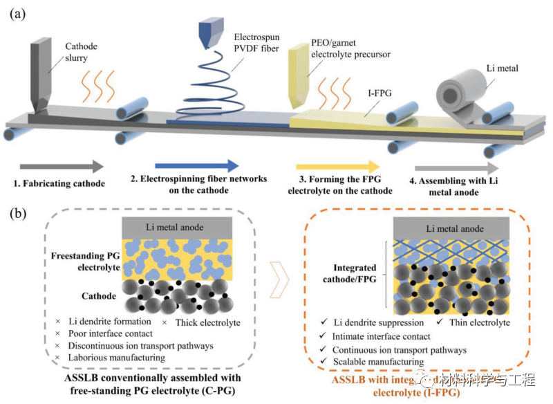 颗粒在线讯:目前的全固态锂电池(ASSLB)制造通常需要费力地制作和组装单个电极和固体电解质,这不可避免地会导致较大的界面电阻。此外,由于机械强度不佳,大多数固体电解质都是过厚的,从未维持机械强度,但是这样做并不能阻止锂树枝晶的形成。这些因素限制了ASSLB的可获得能量密度和可循环性。