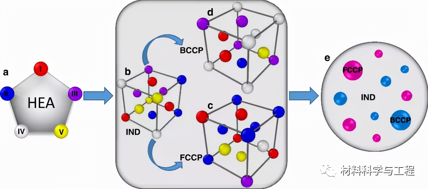 截至目前,研究者已经提出了几种方法来调整HEA微观结构,以促进强度-塑性协同,例如:修饰包括在面心立方(FCC) (FeCoNi)86-Al7Ti7或Al0.5Cr0.9FeNi2.5V0.2中引入Ll2金属间化合物纳米析出物,Fe50Mn30Co10Cr10或Cr20Mn6Fe34Co34Ni6的双相FCC/六方紧密堆积(HCP)微观结构,Ni43.9Co22.4Fe8.8Al10.7Ti11.7B2.5中相邻微米级超晶格晶粒之间的纳米级无序界面,层状共晶AlCoCrFeNi2.1,颗粒间有B2析出相,体心四方纳米析出相为体心立方(BCC) Ti38V15Nb23Hf24,Al0.1CoCrFeNi的非均相再结晶/再结晶微观组织,TiZrHfNb的有序氧配合物。