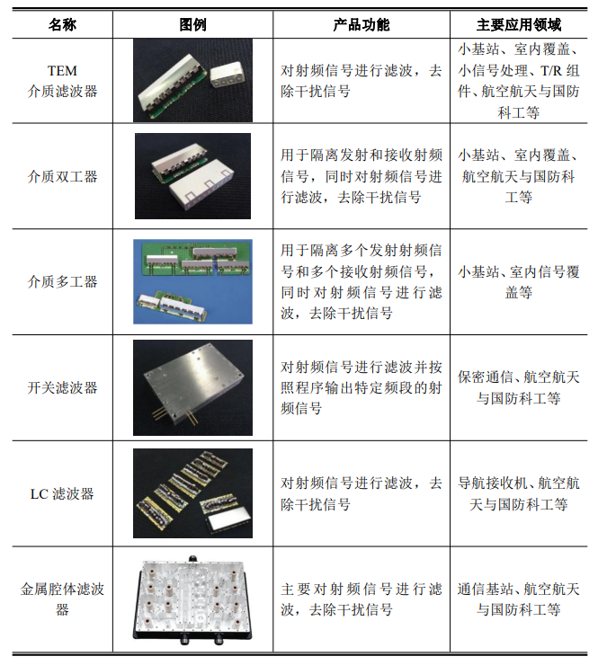 招股说明书显示,江苏灿勤科技的主要产品包括滤波器、谐振器、天线、低互调无源组件,具体如下: