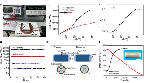 图5.气凝胶限域相变流体热二极管热整流性能与应用