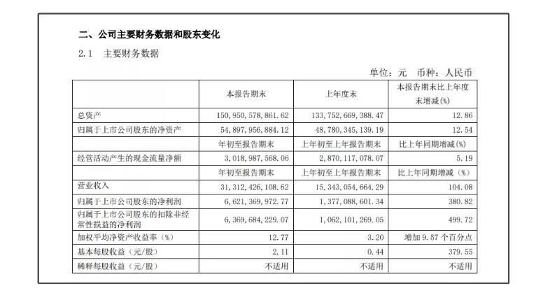 4月9日晚间,万华化学晚间披露一季报,实现营收313.12亿元,同比增长104.08%;净利润66.21亿元,同比增长380.82%。