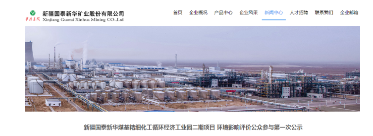 日前,新疆国泰新华煤基精细化工循环经济工业园二期项目环境影响评价公众参与第一次公示。