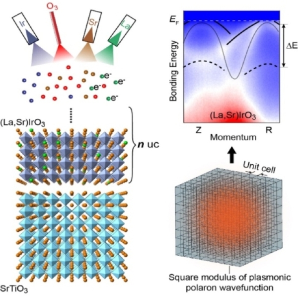 中国科学院上海微系统与信息技术研究所信息功能材料国家重点实验室研究员沈大伟、助理研究员刘正太课题组和上海科技大学研究员李刚课题组合作,利用上海光源原位电子结构研究平台,通过氧化物分子束外延(OMBE)-角分辨光电子能谱(ARPES)集成技术和第一性原理计算,首次在半金属铱氧化物材料SrIrO3电子结构中发现低能等离激元极化子的直接证据,并通过电荷掺杂实现了对该材料中极化子能量的有效调控。