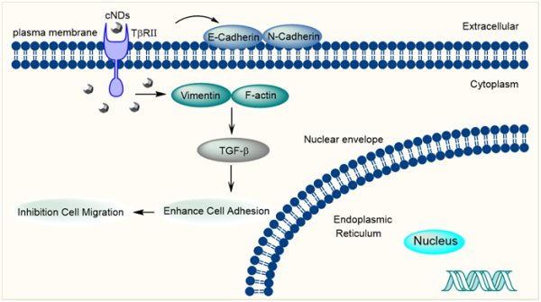 羧基化纳米金刚石抑制肿瘤细胞迁移过程示意图