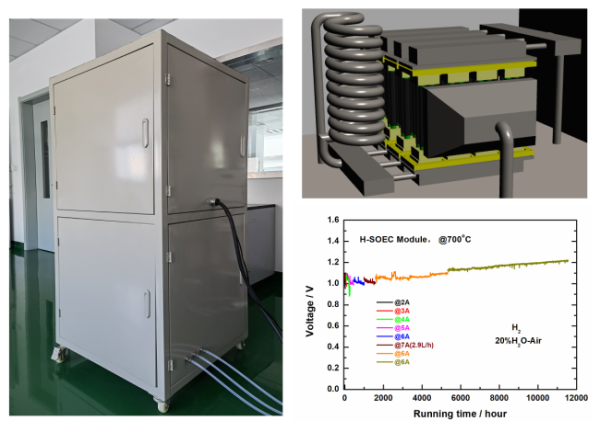 近日,中国科学院上海硅酸盐研究所研究员温兆银带领的团队面向高温电解水蒸气制氢的应用方向,在高温质子导体材料的基础研究和电解水蒸气制氢系统开发方面取得了重要进展,研制的管式高温电解堆连续运行超过1万小时。相关材料体系的研究结果国内外尚未见公开报道。