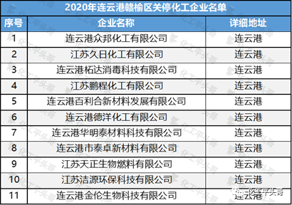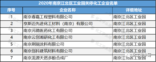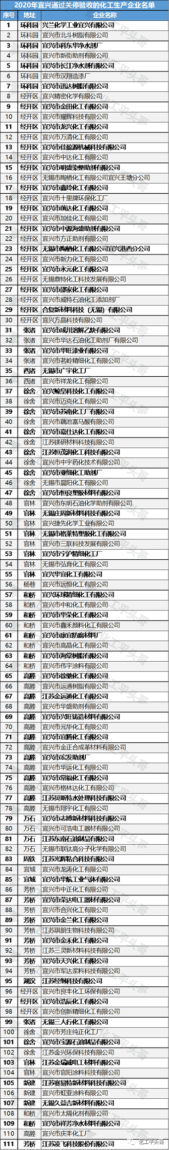 表1 2020年宜兴通过关停验收的化工生产企业名单