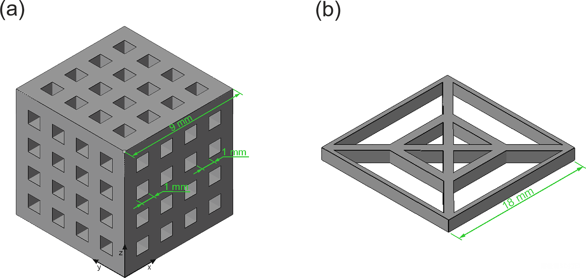 △科学家们的3D打印立方体结构(如图)具有低水平的包装密度,图片来自Plos One期刊