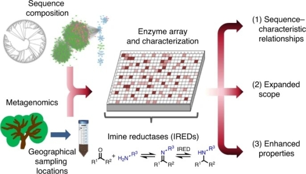 中国科学院天津工业生物技术研究所研究员朱敦明、吴洽庆带领的生物催化与绿色化工团队,与英国曼彻斯特大学教授Nicholas J. Turner、英国Prozomix公司合作,开发出基于宏基因组的亚胺还原酶筛选与表征的工具箱。该研究基于宏基因组文库和基因组数据库的生物信息学分析,发现了300多个未知序列的新亚胺还原酶;开发了基于亚胺还原酶氧化方向的高通量显色方法;构建了含384个亚胺还原酶的微孔板,并快速鉴定了其热稳定性及其对不同结构类型酮与胺的催化能力;利用动态动力学拆分过程,实现了N-取代β-氨基酸酯高产率、高立体选择性及高非对映选择性的不对称合成。该研究为进一步拓展亚胺还原酶的合成应用提供新的策略和方法,也为高效构建其他酶工具箱提供新思路。