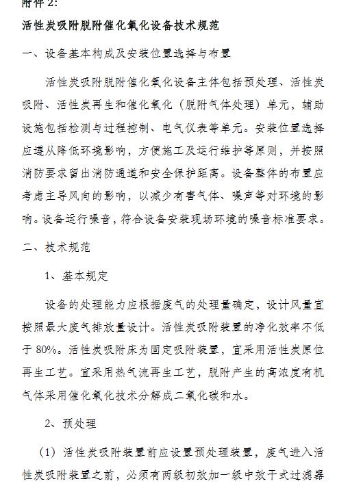 (2)针对汽车维修行业喷涂作业产生的VOCs废气低浓度、大风量的主要特点,维修企业在升级或新装废气收集处理系统时,应按照《重点行业挥发性有机物综合治理方案》要求,建议选择“吸附浓缩”+“催化氧化(CO)”的组合治理技术设备,设备的技术规范见附件2。