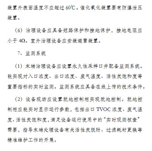 (2)VOCs末端治理设备发生故障或检修时,对应生产工艺设备应停止运行,待检修完毕后同步投入使用。