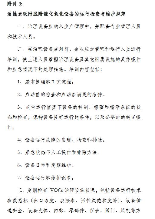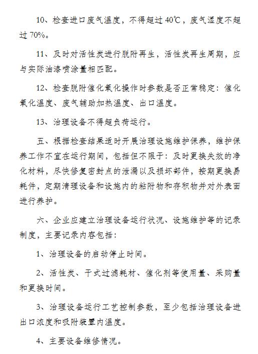 (3)企业应根据 VOCs末端治理设备运行过程对应的油漆使用量、各种设施运行工况的温度、排放浓度等参数的变化,正确进行设施的运行和维护,详见附件3。