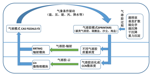 气溶胶模式与气候模式耦合示意图