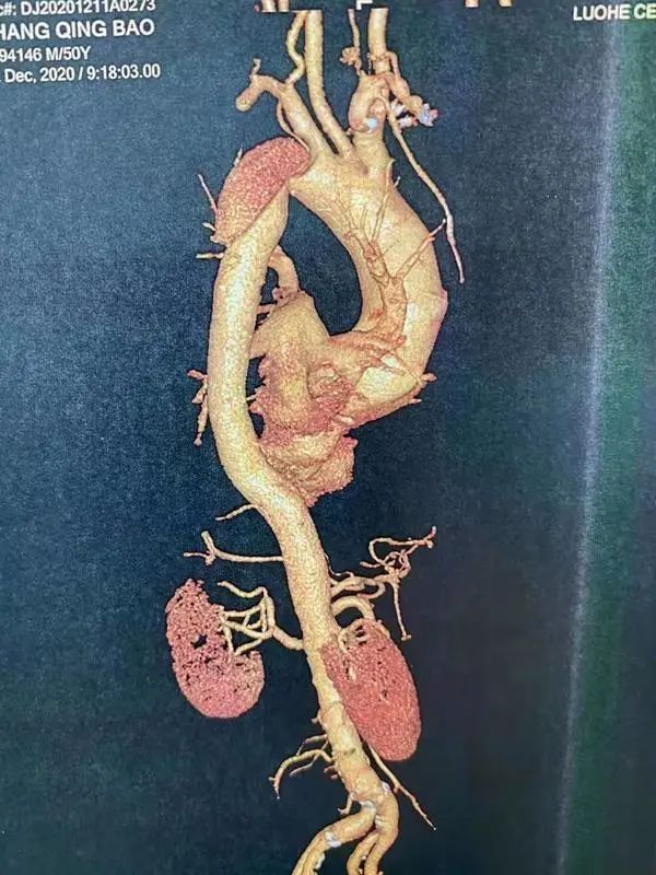 据了解,今年50岁的张先生前段时间突发胸背疼痛,疼痛持续不缓解,并且伴随大汗等症状,在漯河市中心医院检查后,经诊断为胸主动脉夹层,并且撕裂至左侧颈总动脉。而主动脉夹层,因其隐蔽性强,致死、致残率极高,也被称为“人体炸弹”。