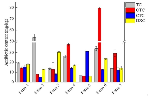 以7家养猪场废水为对象回收得到的鸟粪石固体中TCs含量