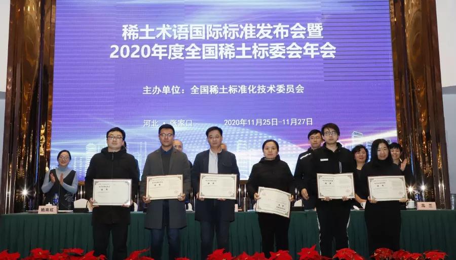 会议颁发了“2020年度稀土标委会技术标准优秀奖”,并对“2020年度稀土标准化先进工作者”进行了表彰。有研稀土及其子公司乐山有研牵头制定的两项行业标准《绿色设计产品评价技术规范 稀土火法冶炼产品》《镧铈金属》均获得2020年度稀土标委会技术标准奖;赵龙胜博士获评2020年度稀土标准化先进工作者。