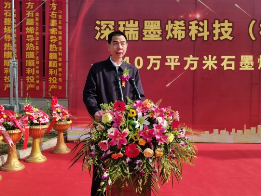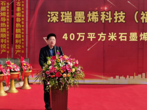 三明市政协副主席、永安市委书记蒋先东代表永安市委、市政府向项目投产表示热烈祝贺!他说:贝特瑞集团深瑞墨烯石墨烯导热膜项目投产,必将推动永安市朝着建设国内一流高端石墨和石墨烯产业集聚区再迈一大步,必将为永安全方位推动高质量发展提供更加坚实的支撑。