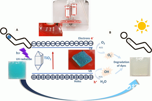 选择TiO2是因为它的光催化能力,能够通过一系列的还原-氧化链反应来分解有机材料。在这一机制中,一旦暴露在紫外线辐射下,团队试图启动传感器中的绿色、橙色和蓝色染料的分解。