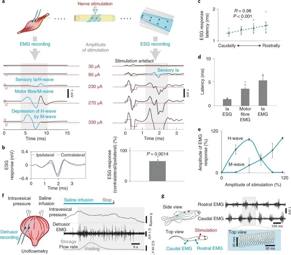 随后研究人员利用这一神经打印电极进行动物实验,包括运动障碍动物脊髓运动系统的激活、横纹肌和平滑肌的记录以及感觉运动和内脏网络的连接。