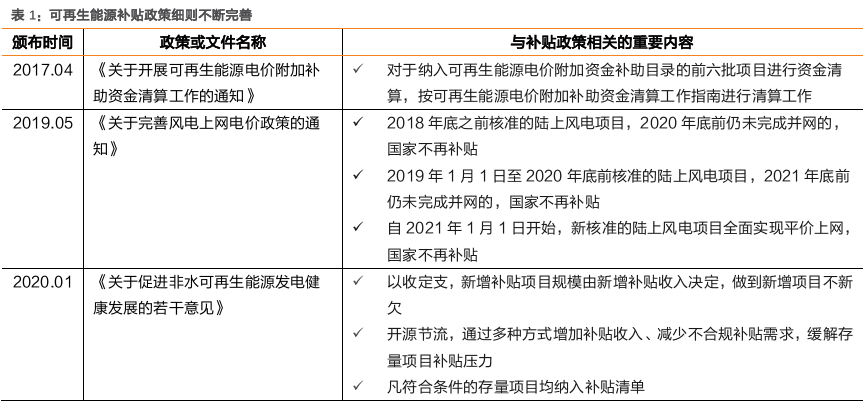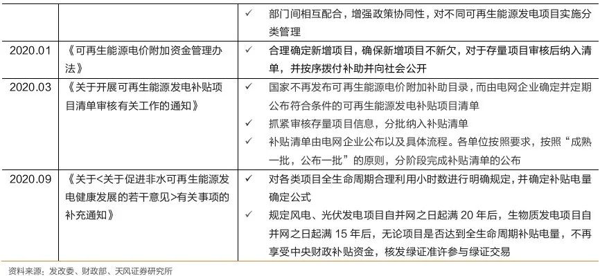 项目补贴资金确权后,存量补贴发放有望提速。2020年,关于非水可再生能源政策出台密集度非常高,年初财政部发布4号文和5号文,开启了可再生能源补贴政策的修改提升之路。《通知》连同年初4号文,一起完成对可再生能源项目享受补贴权益的确认,提高了补贴资金发放的计划性和稳定性,为运用金融手段解决补贴拖欠问题提供了必要条件。我们认为,在政策不断完善之后,以及未来补贴基金缺口解决方案的逻辑逐步理顺后,存量拖欠补贴发放有望提速。