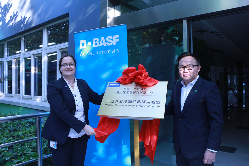 11月4日巴斯夫亚太区特性材料部研究与开发资深总监穆音婷博士(Dr. Ingrid Martin,左)与巴斯夫全球副总裁、大中华区特性材料业务管理龙志强先生为整合后的巴斯夫特性材料亚太区工程塑料创新中心产品开发及部件测试实验室揭牌。