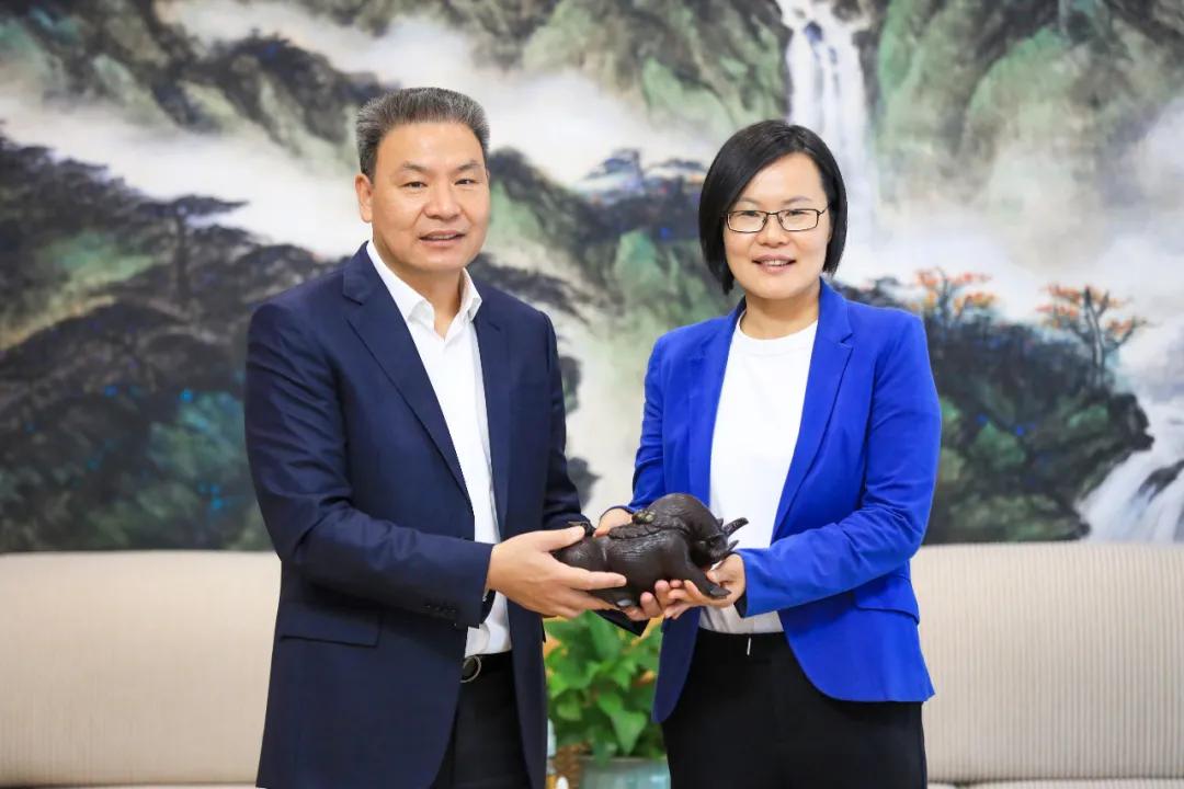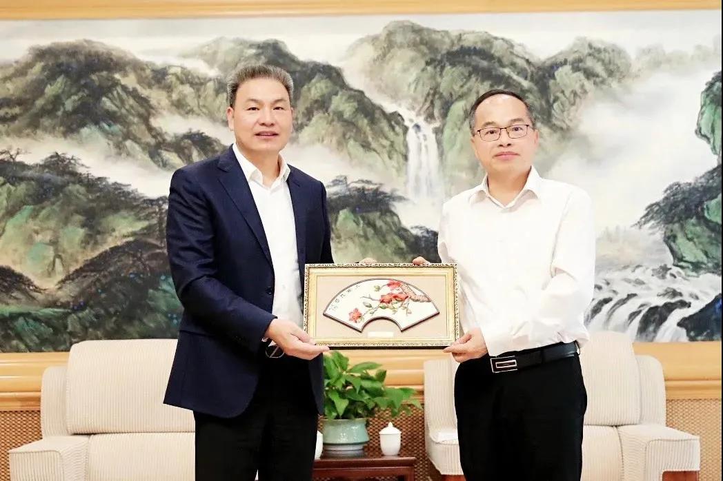 中共广州市花都区委书记黄伟林与李董互赠礼物