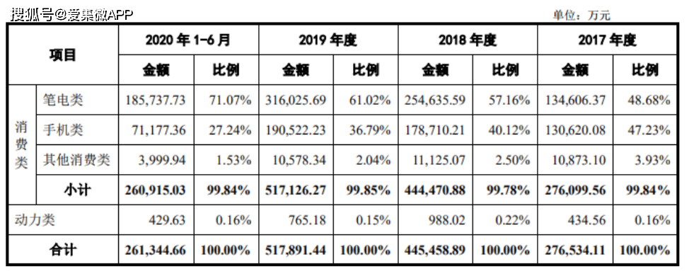 业绩方面,据招股书披露,2017年、2018年、2019年和2020年1-6月,珠海冠宇营业收入分别为293,505.67万元、474,695.09万元、533,105.08万元和269,615.88万元,其中主营业务收入全部为核心技术产品收入。